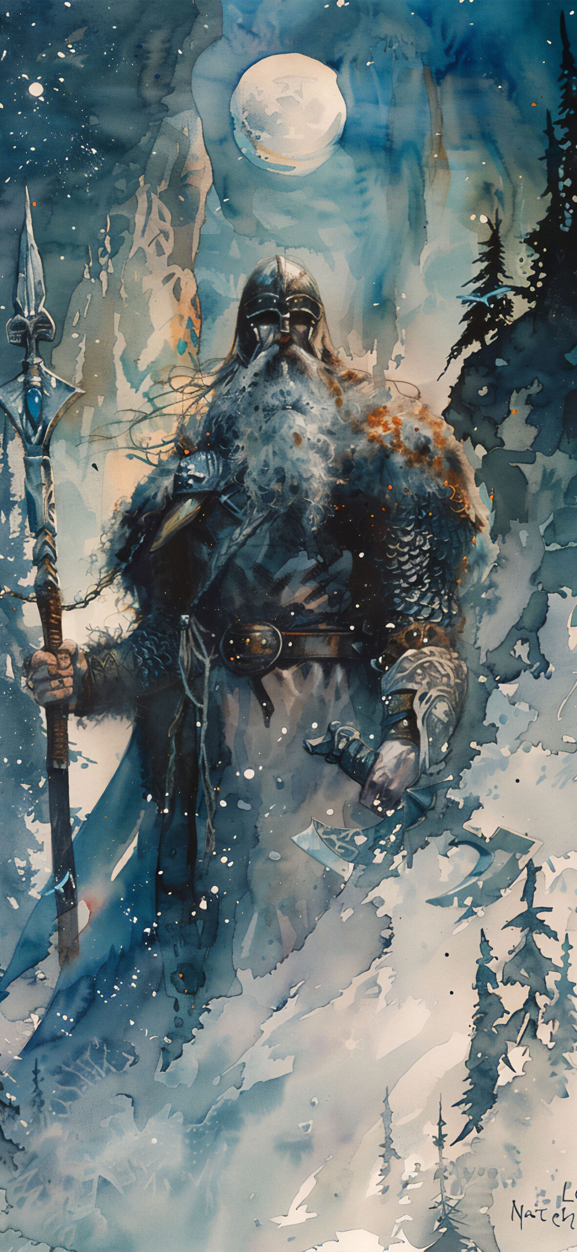 北欧神話 ヴァルハラ オーディン 水彩画 月夜