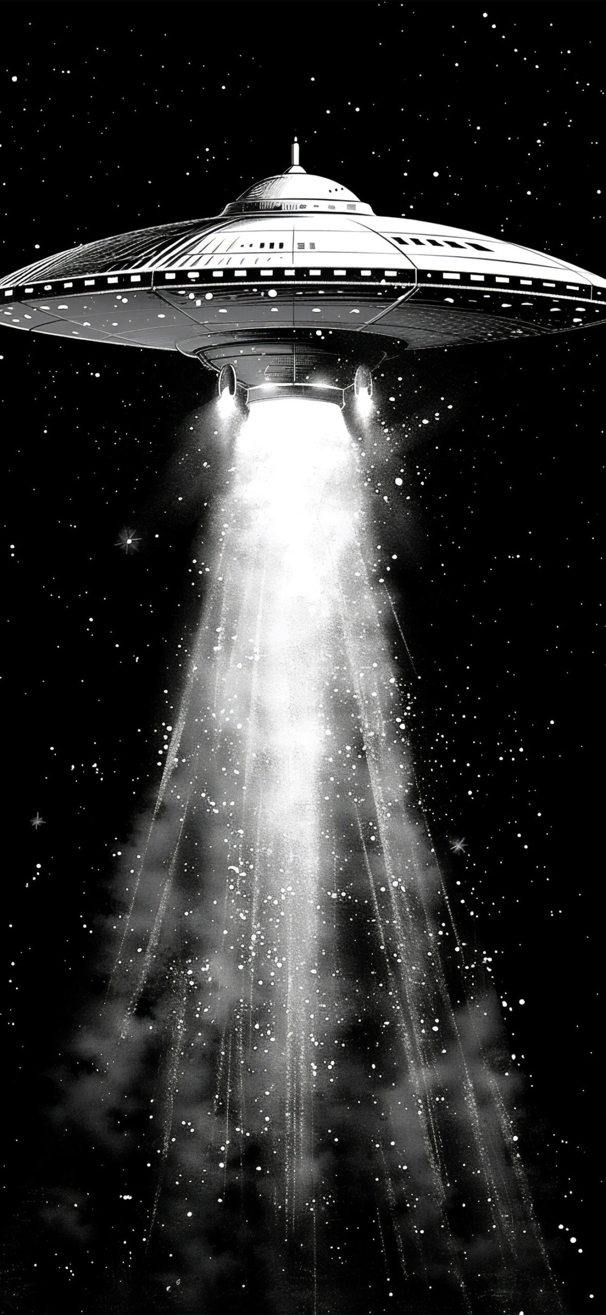 モノクロ UFO イラスト 遭遇3