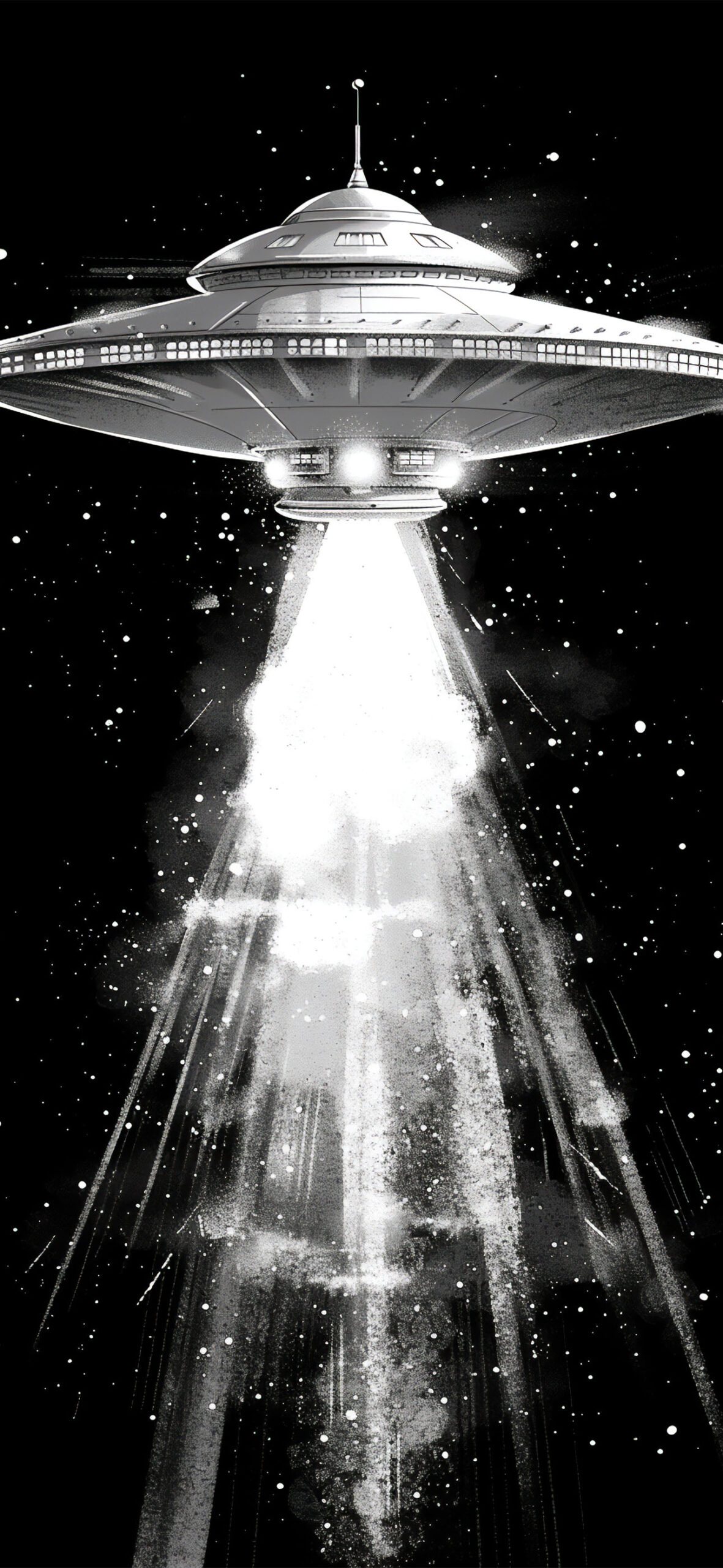 モノクロ UFO イラスト 遭遇2