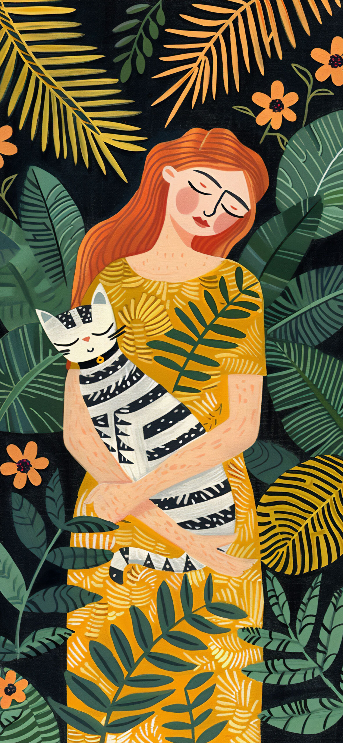 猫と女性 イラスト3