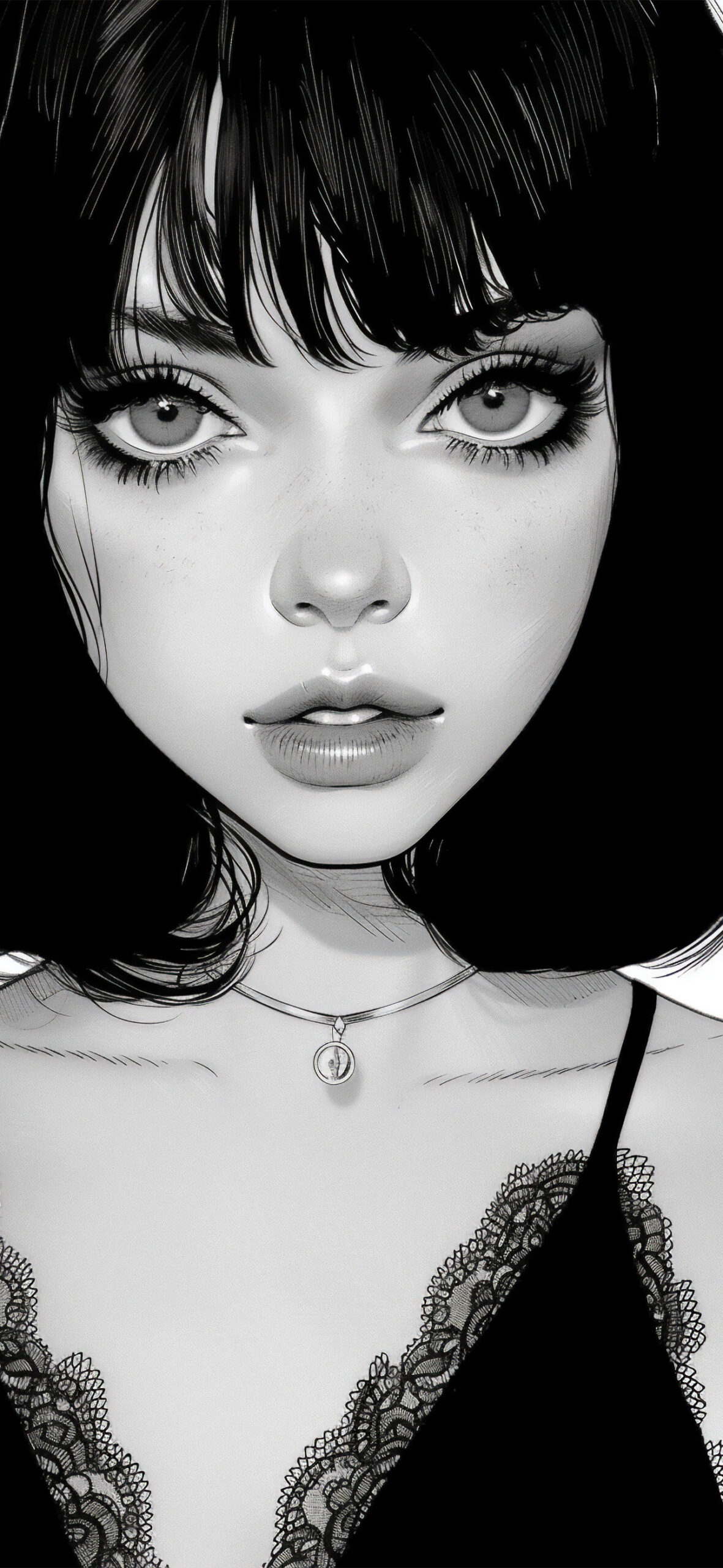ボブの少女 イラスト 白黒4