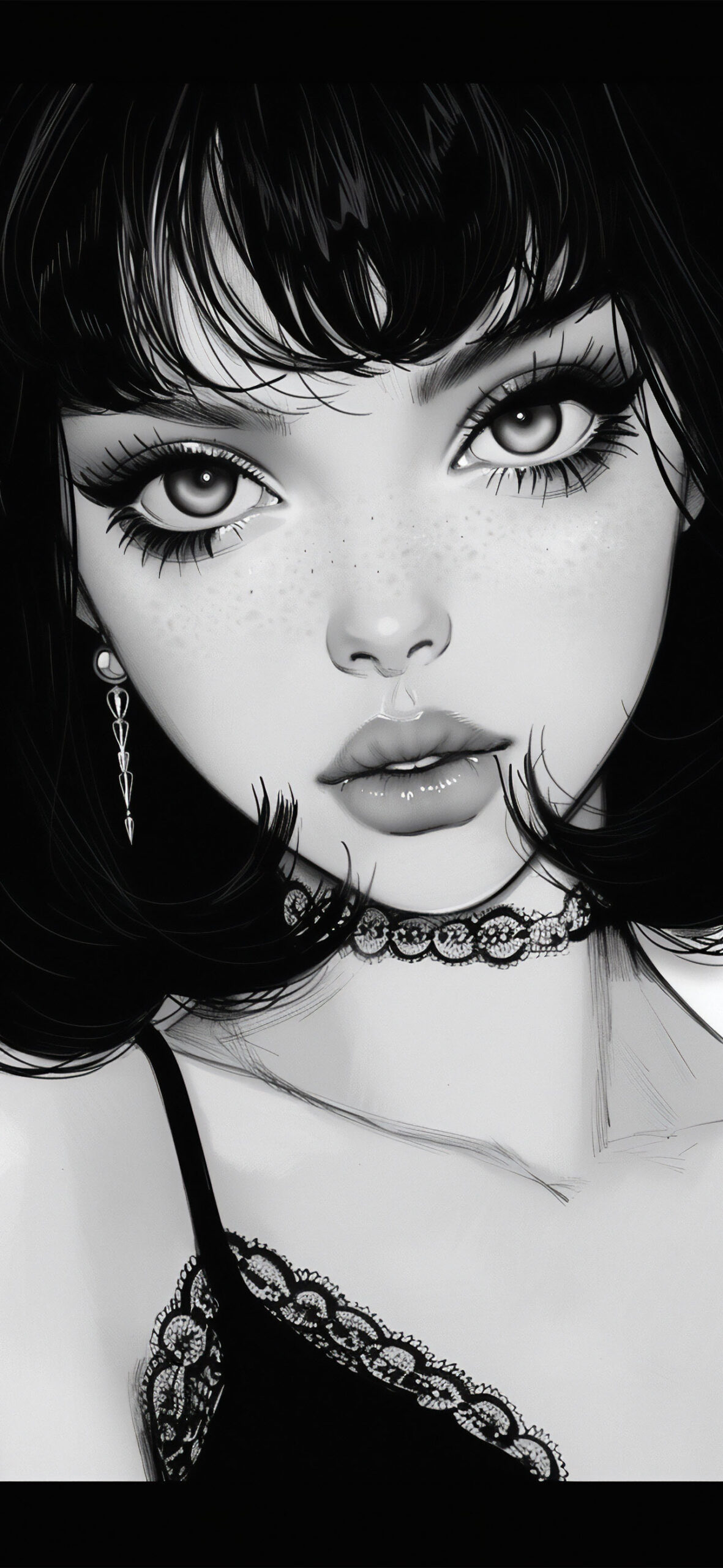 ボブの少女 イラスト 白黒3